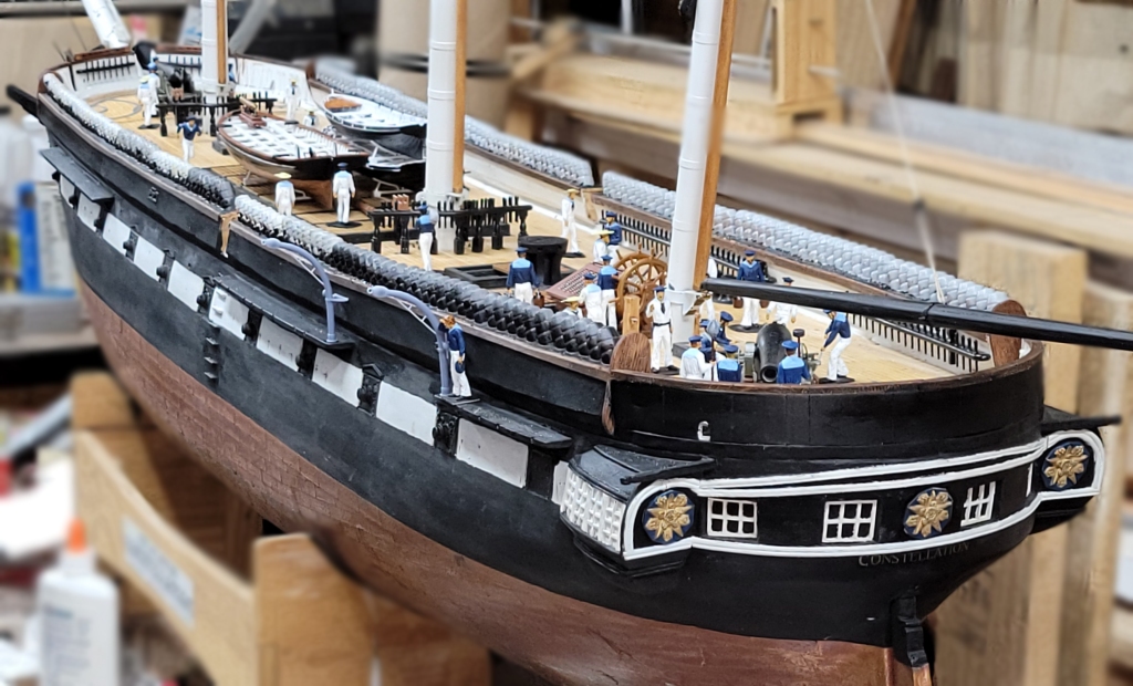 Relative to the painting, they look right; I just wish I could find a real example of this style, even on other ships. Constellation had very different styles of davits by the time photography came along.