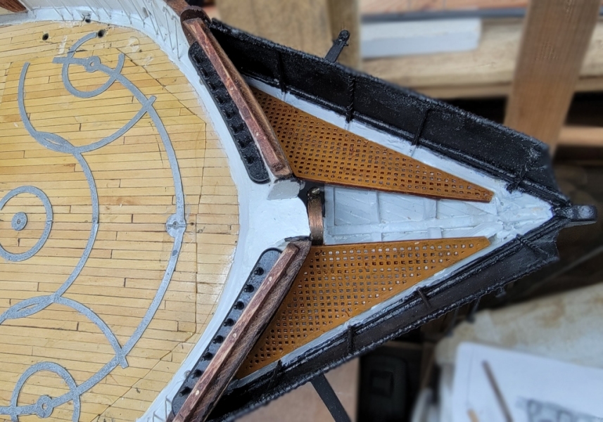 8/16: I cut back the head gratings as they wouldn't move past the bowsprit no matter how I tried.