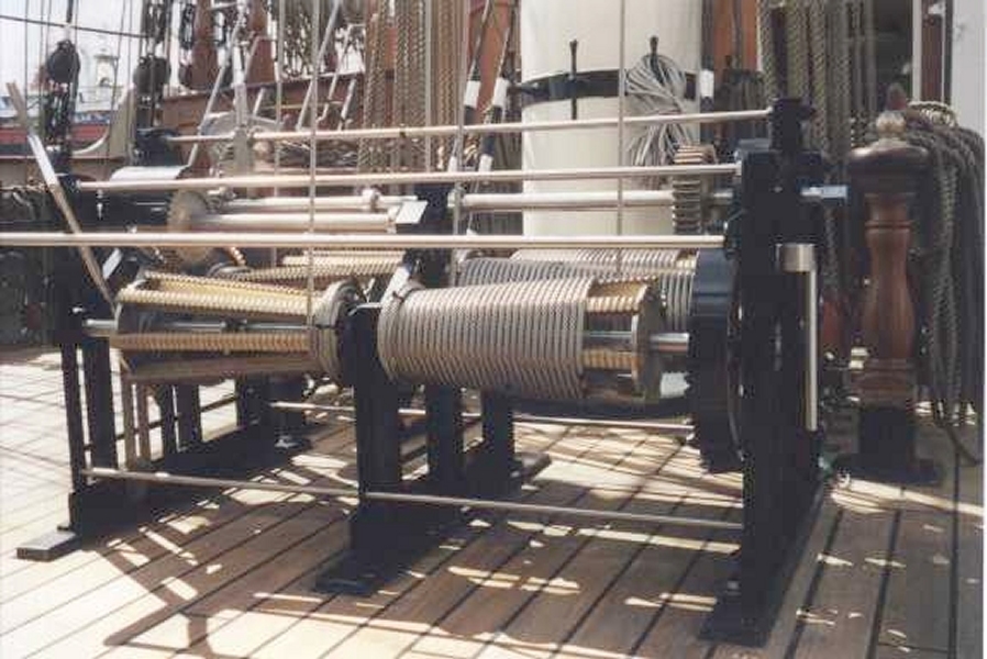 As sailing ships evolved technology was developed to require less crew to run the ship. Split-tops'ls, and split-t'gallants required less men aloft, and winch systems, such as the Jarvis Winch (right), were developed that only required 2-4 men to brace all the yards on a mast at once.