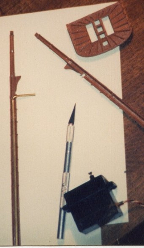The main draw-back to this sytem is the mast is weakened at the slot where the rod emerges at the top end. On the 1:96 scale model, some half round tubing was epoxied inside the mast, bridging the gap, and strengthening the mast at that spot.