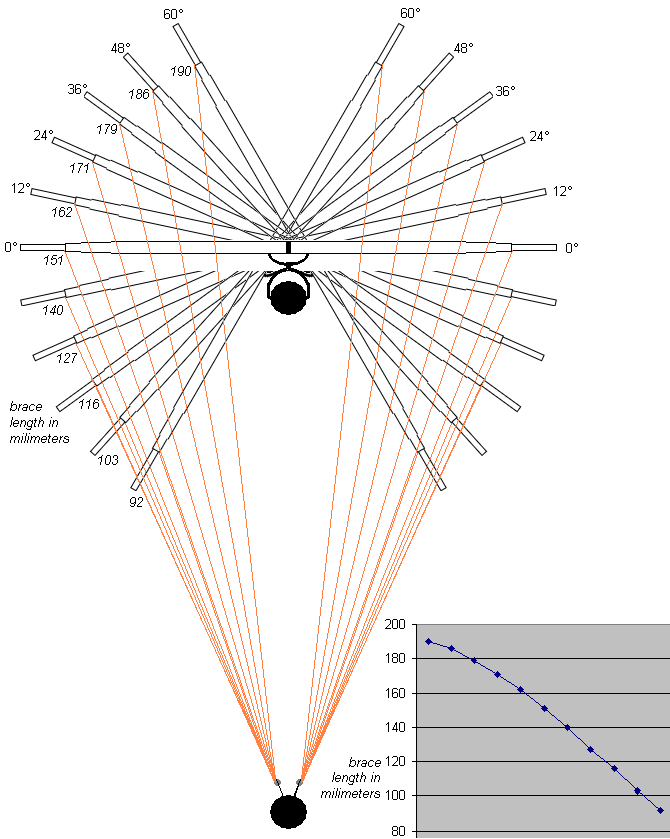 A protractor jig is used at each yard to measure the brace length every 12 degrees to 60 degrees port and starboard.