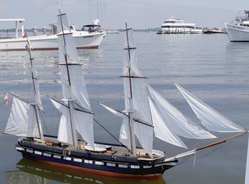 A second fairlead is needed as shown, because the braces go off in various directions to get to their yards, and would interfere with the servo's movement on it's rails without this fairlead to guide them straight to the servo-mounted fairleads.
