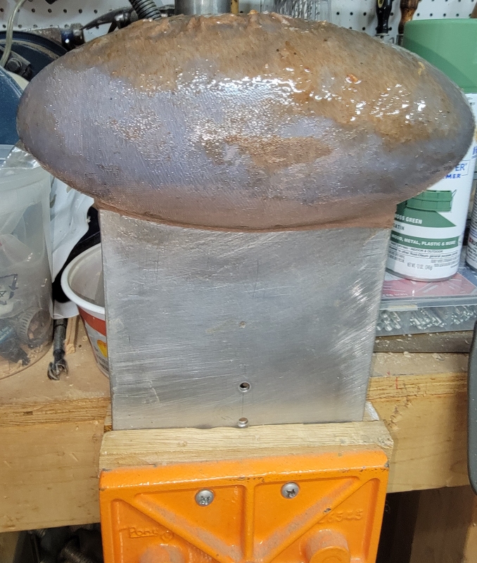 6/4: Once the epoxy had set, I took a disc sander to it and knocked off all the lumps and bumps, then coated it with epoxy (sans sawdust) again. This was done for a second coating so the bulb, (in person at least), appeared to be encased in glass, albeit, wavy glass.