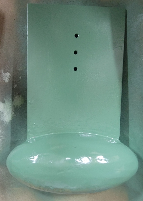 Once printed, the pieces will be bonded together to form a left and a right half. I'll fill these with the lead shot, and pour epoxy into each half to bond everything together and make it solid. The two halves will be bonded together on the fin and then a hole will get drilled through the bulb and the fin for a pin, so there's no chance of the buld coming off the fin. The whole thing will get a coat of epoxy outside to toughen up the resin bulb, and then it'll be painted the same Moss Green as the models bottom.