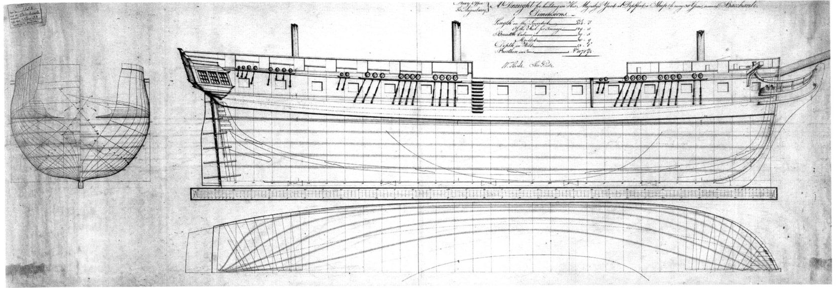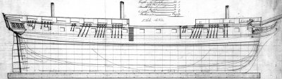 Draught of Lively class frigate Bacchante, dated August 1809 in the National Maritime Museum