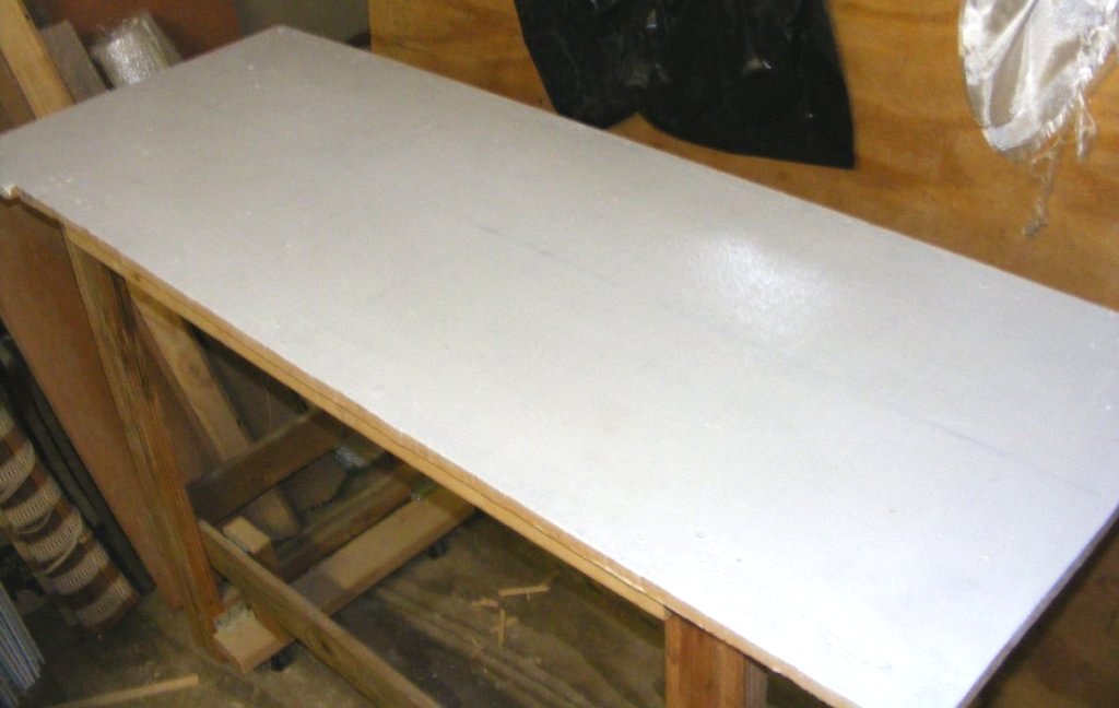 11/13: After building the Constellation and Pride hulls on it, the bench was getting pretty scruffy and it was hard to see the correct marks on it, so I sanded it and gave