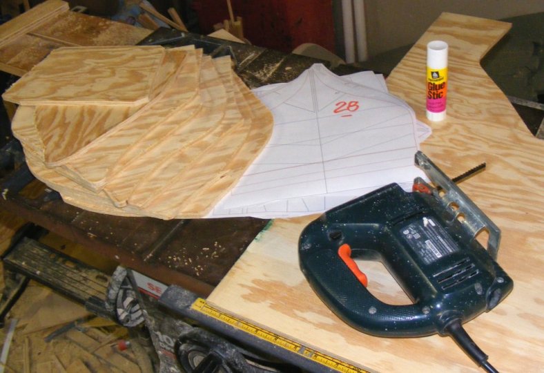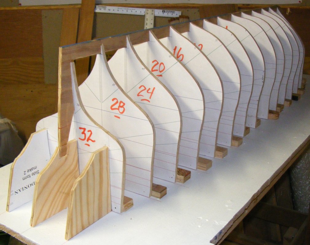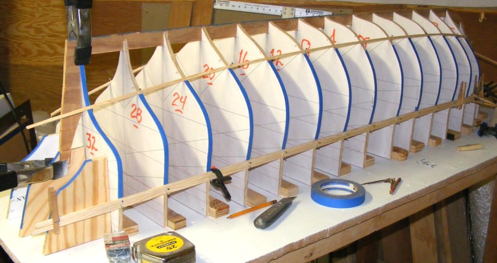 as forms. The hull will be planked in soft pine and faired. Most of the forms will be removed, a few will be left to support