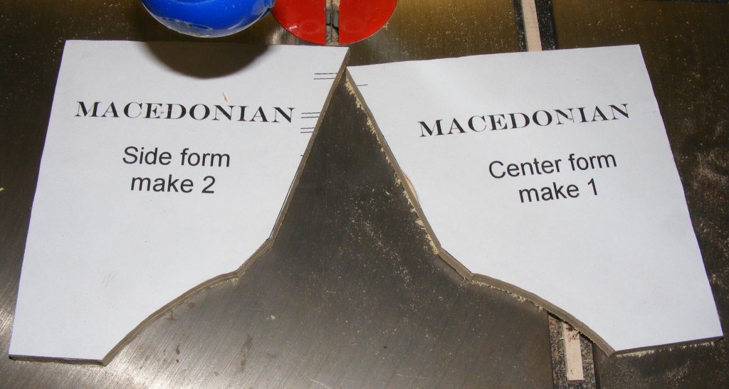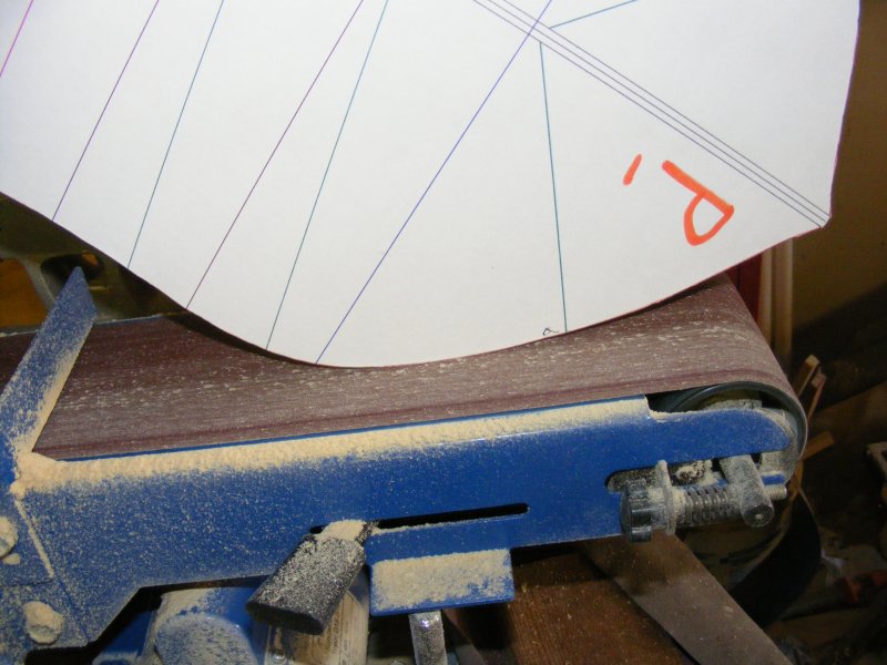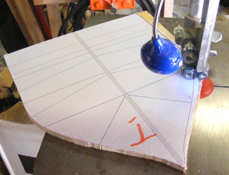 the form is more finely cut on the band saw, and touched up on the belt sander. The forms are also beveled to the shape of the hull.