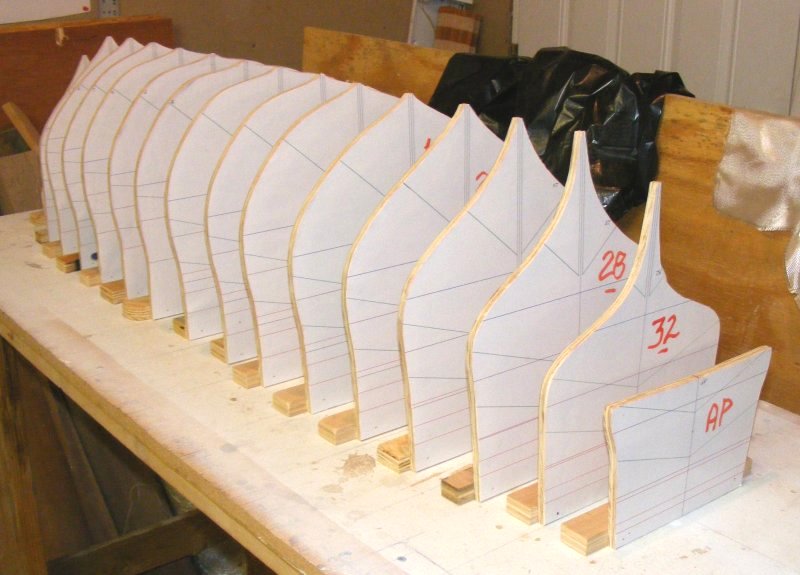 The model will be built plank-on-bulkhead - that is, selected stations will be cut from plywood