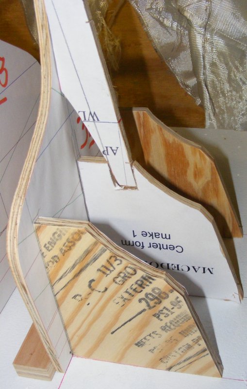 11/19: I tried to figure out the transom from the drawing and decided to make forms for the lines I was the most sure of; the two sides and the center.